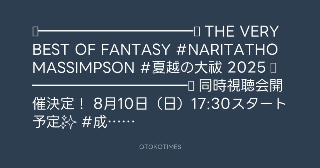 OTOKOTIMES @OtokoTimes1988 – 23:46・2025年8月7日