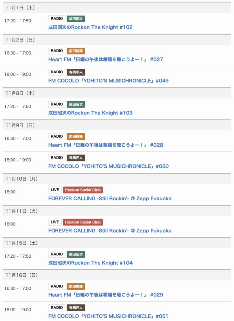 11/1〜11/16までのスケジュールをお届けします。 ※現時点で確認可能な範囲のみ。 ... -