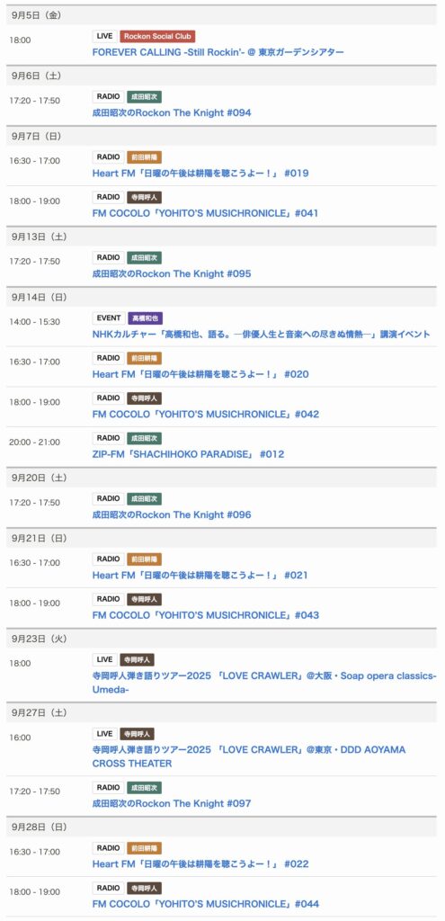 9月までのスケジュールをお届けします。 ※現時点で確認可能な範囲のみ。 (2025/8/...