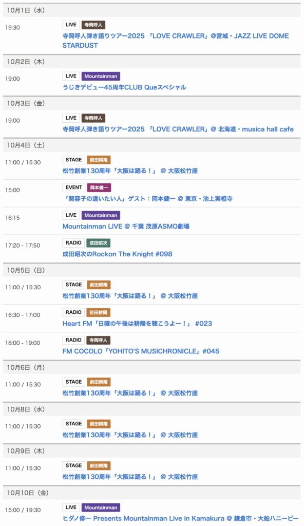 10/1〜10/10までのスケジュールをお届けします。 ※現時点で確認可能な範囲のみ。 ... -