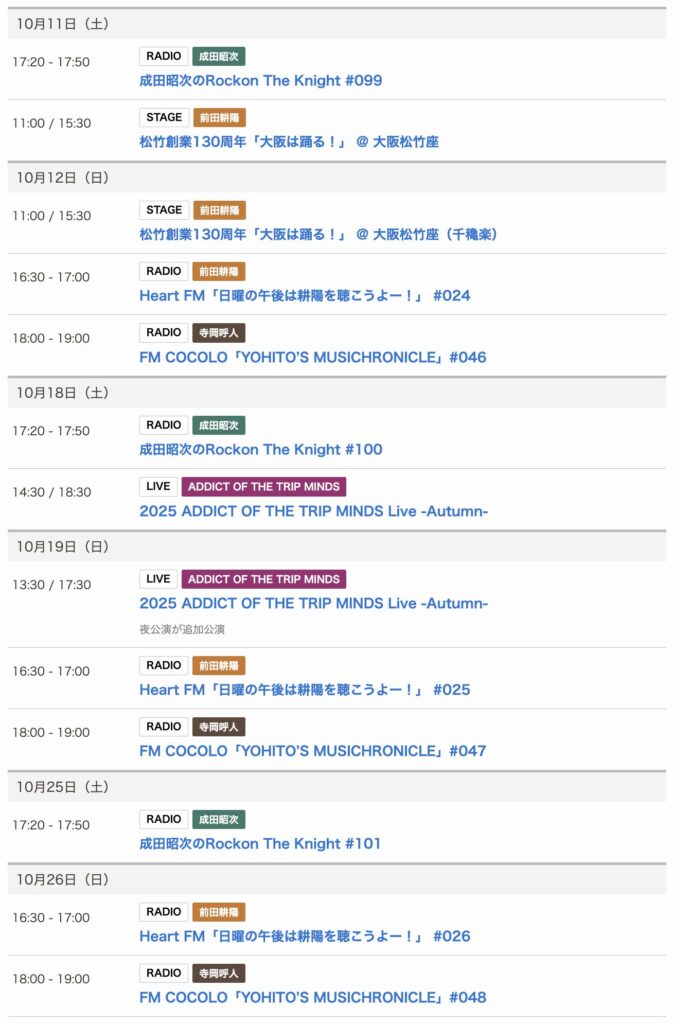 10/11〜10/26までのスケジュールをお届けします。 ※現時点で確認可能な範囲のみ。 ... -