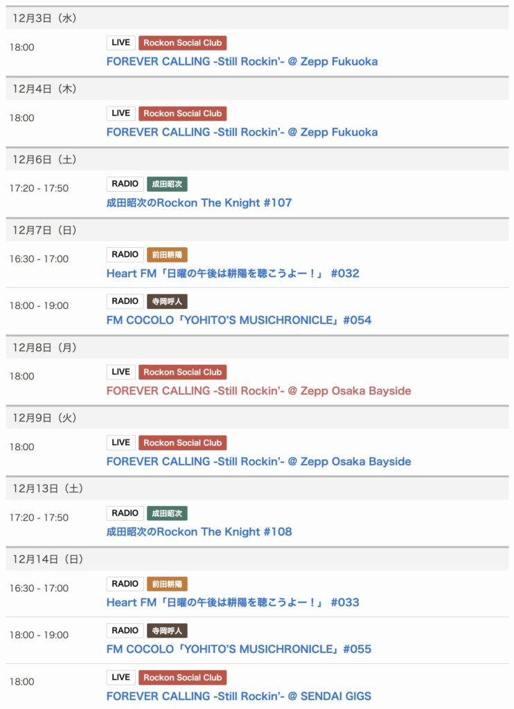 12/1〜12/14までのスケジュールをお届けします。 ※現時点で確認可能な範囲のみ。 ... -