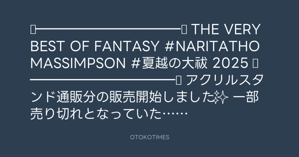 OTOKOTIMES @OtokoTimes1988 – 22:02・2025年8月3日