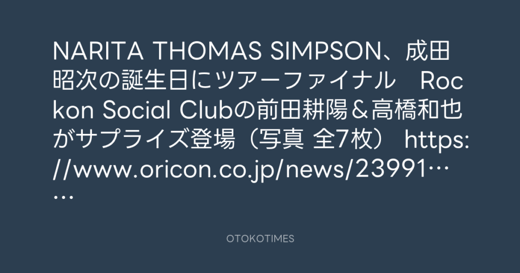 NARITA THOMAS SIMPSON、成⽥昭次の誕⽣⽇に前⽥耕陽&⾼橋和也も登場! 横浜でツ...