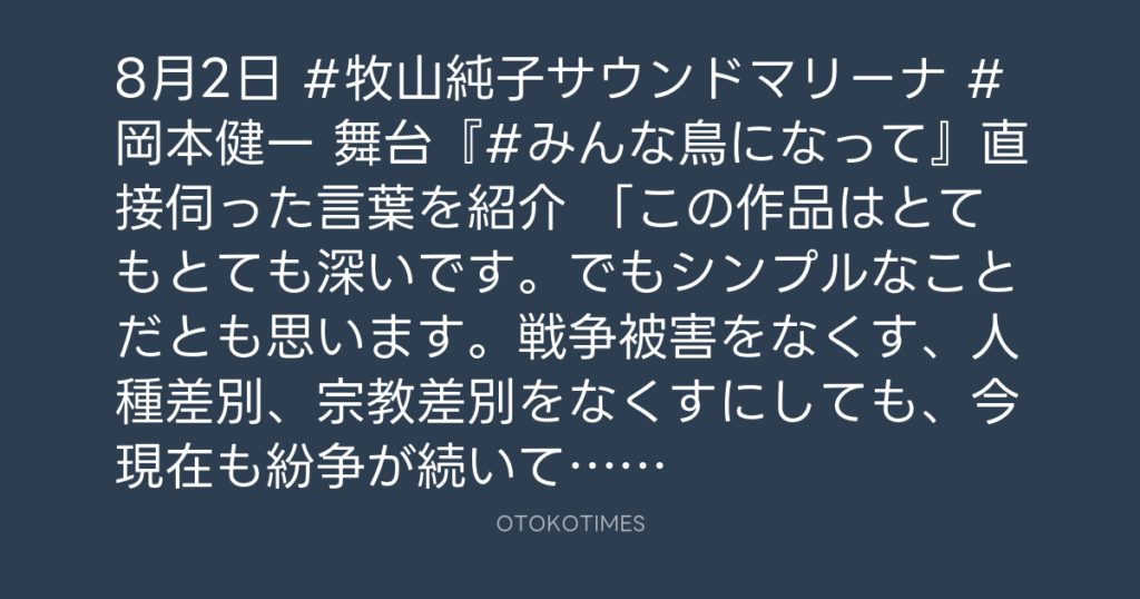 8月2日 #牧山純子サウンドマリーナ📻 #岡本健一 舞台『#みんな鳥になって』直接伺... -