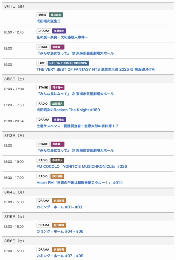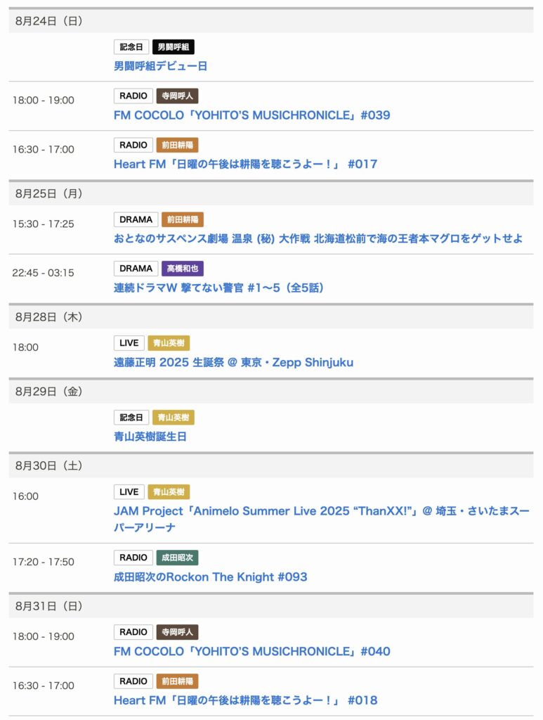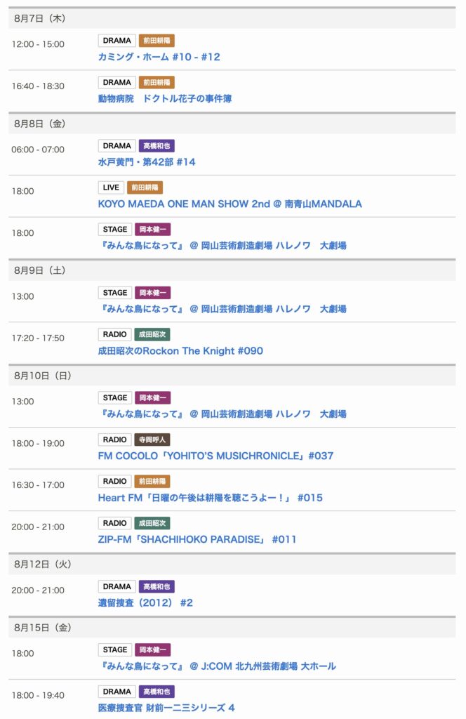 8/7〜8/15までのスケジュールをお届けします。 ※現時点で確認可能な範囲のみ。 い... -