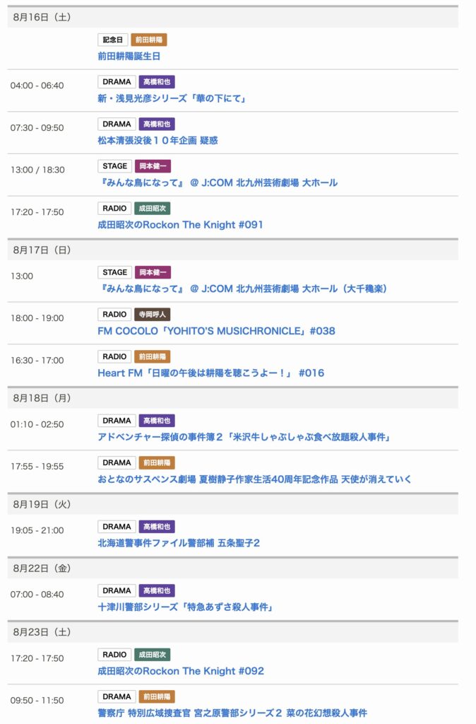 8/16〜8/23までのスケジュールをお届けします。 ※現時点で確認可能な範囲のみ。 い... -
