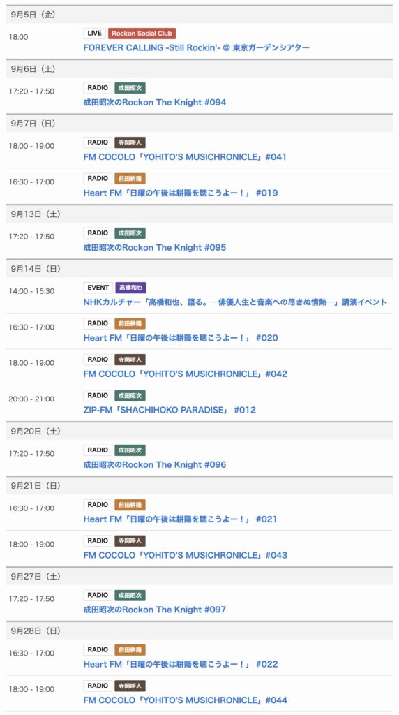 9/月までのスケジュールをお届けします。 ※現時点で確認可能な範囲のみ。 (2025/7... -