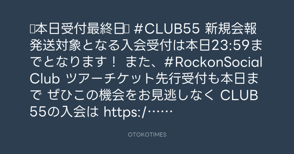◤本日受付最終日◢ #CLUB55 新規会報発送対象となる入会受付は本日23:59までとなり... -