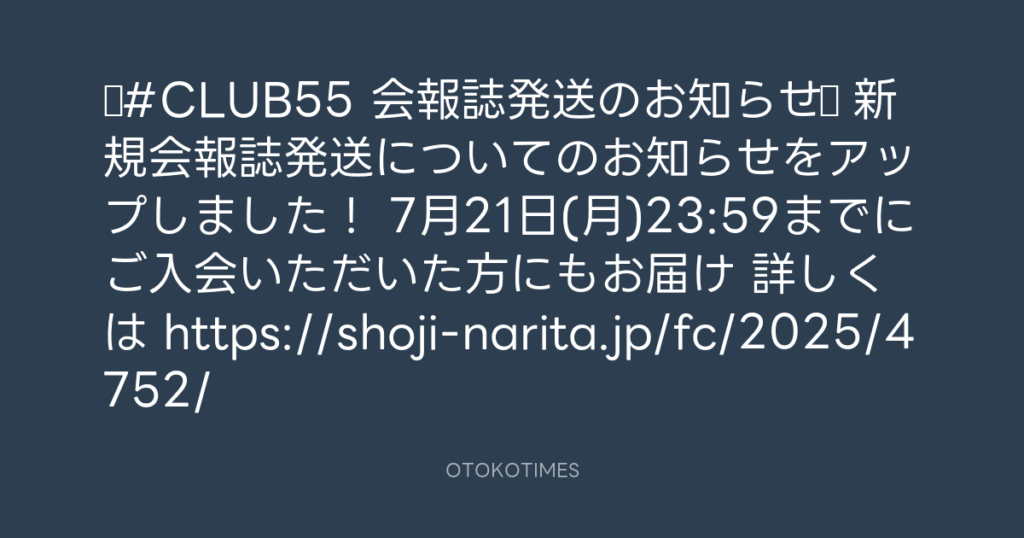 ◤#CLUB55 会報誌発送のお知らせ◢ 新規会報誌発送についてのお知らせをアップしまし... -