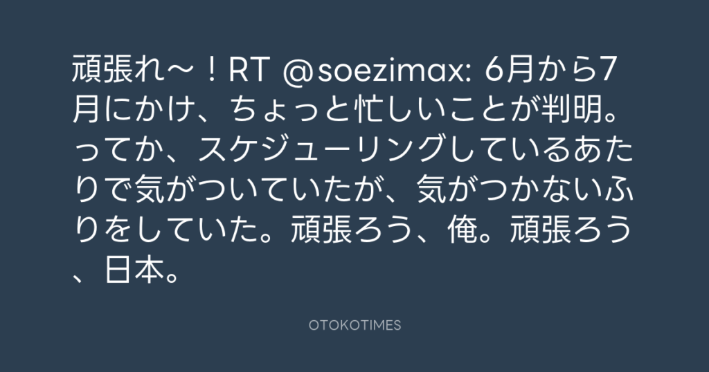 頑張れ〜!RT @soezimax: 6月から7月にかけ、ちょっと忙しいことが判明。ってか、... -