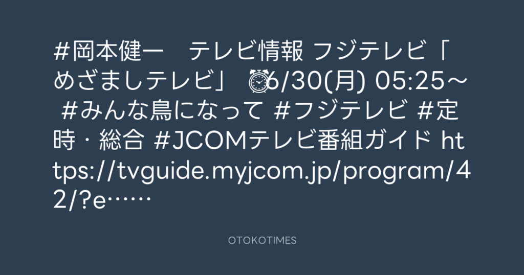 #岡本健一 テレビ情報 📺フジテレビ「めざましテレビ」 ⏰6/30(月) 05:25〜 #みん... -