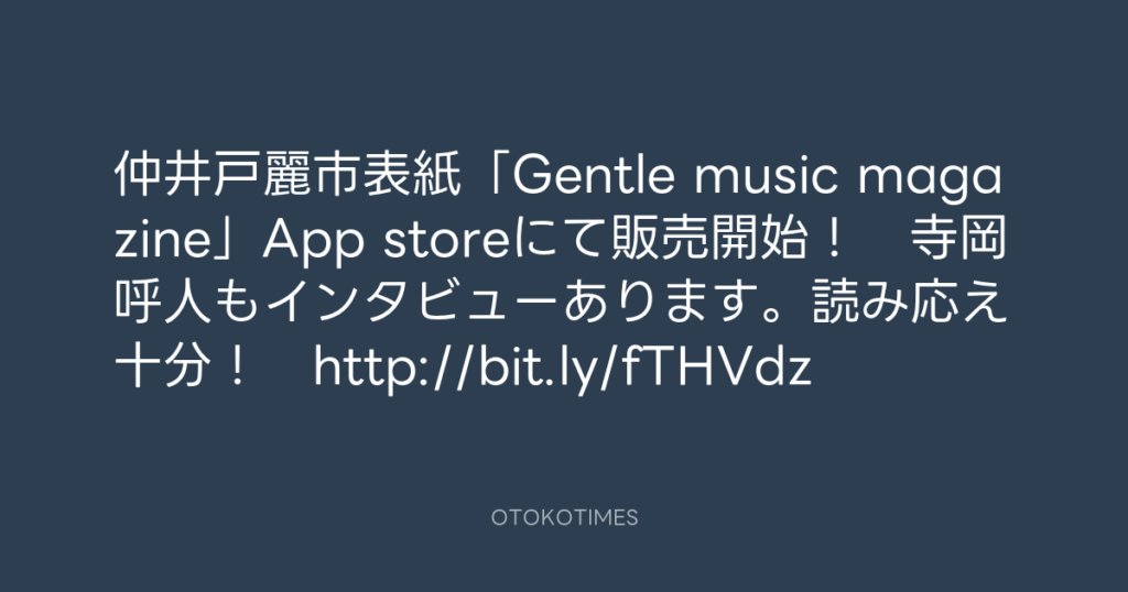 仲井戸麗市表紙「Gentle music magazine」App storeにて販売開始! 寺岡呼人もイ...