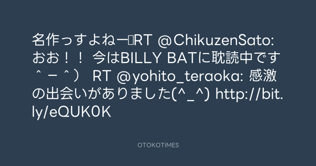 名作っすよねー♪RT @ChikuzenSato: おお!! 今はBILLY BATに耽読中です^−^) RT... -