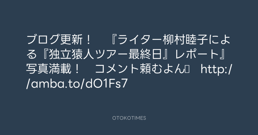 ブログ「独立猿人ツアー最終日」 コメント待ってるよー♪ http://amba.to/aYDVNN -