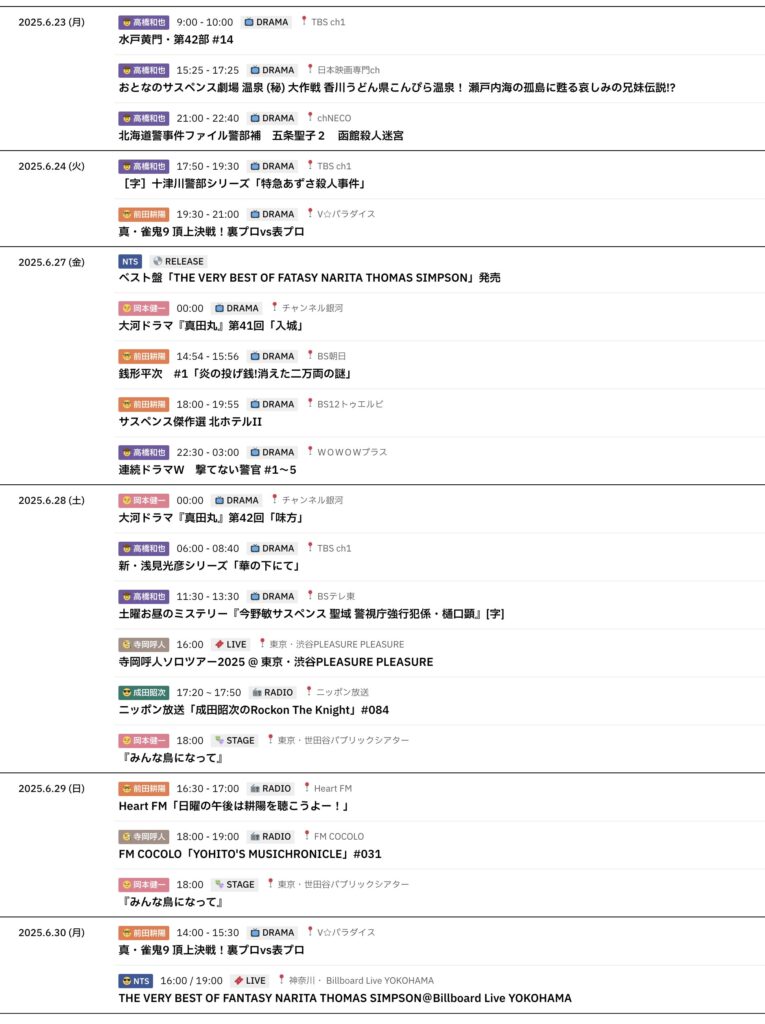 6/23~6/30までのスケジュールをお届けします。 ※現時点で確認可能な範囲のみ。 (2... -