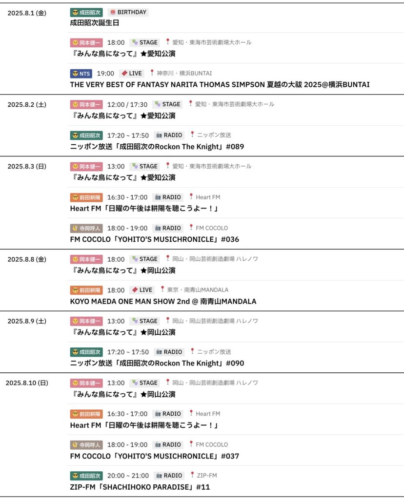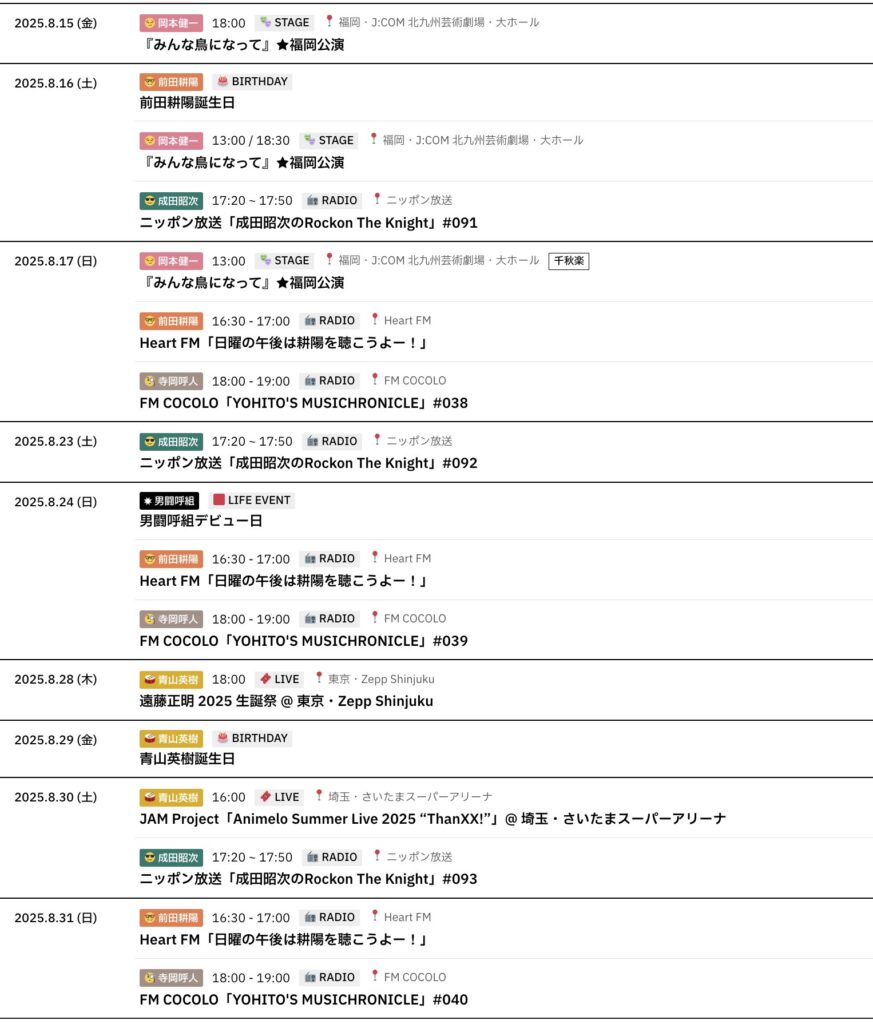 8/15~8/31までのスケジュールをお届けします。 ※現時点で確認可能な範囲のみ。 (2... -