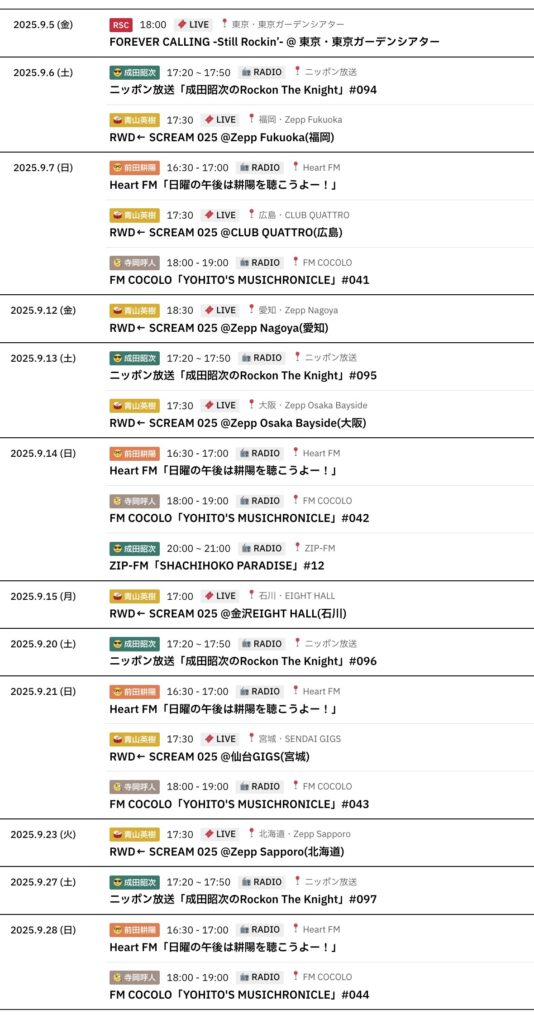 9月までのスケジュールをお届けします。 ※現時点で確認可能な範囲のみ。 (2025/6/... -