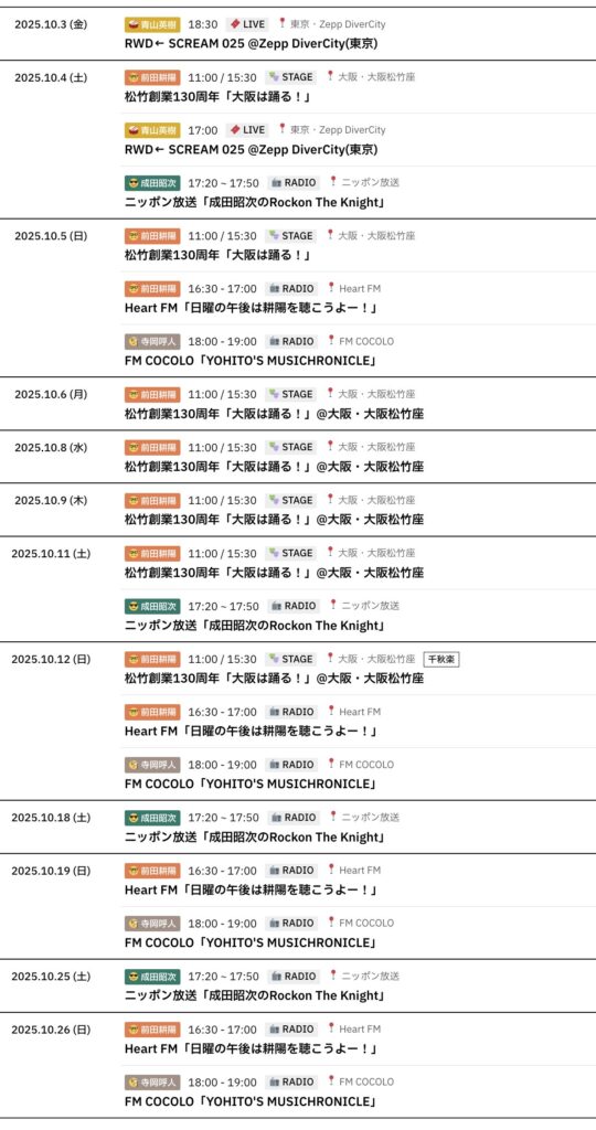 10月までのスケジュールをお届けします。 ※現時点で確認可能な範囲のみ。 (2025/6... -