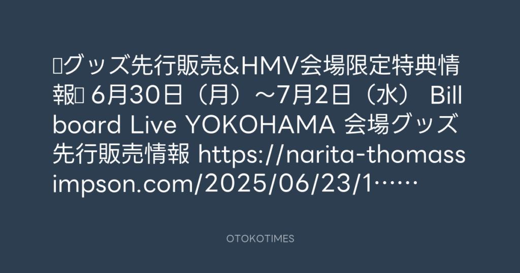 OTOKOTIMES @OtokoTimes1988 – 20:43・2025年6月23日