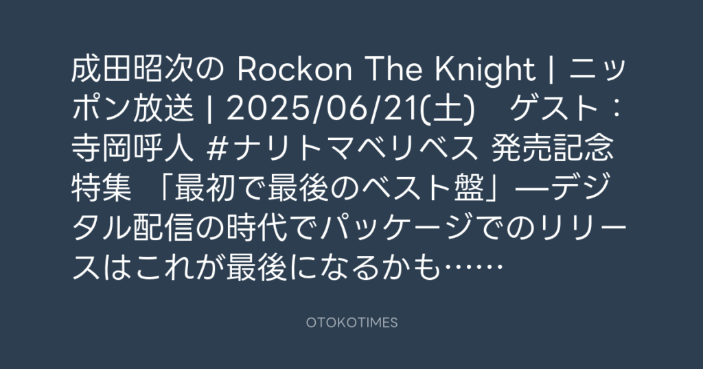 📻 成田昭次の Rockon The Knight | ニッポン放送 | 2025/06/21(土) ゲスト:寺岡... -
