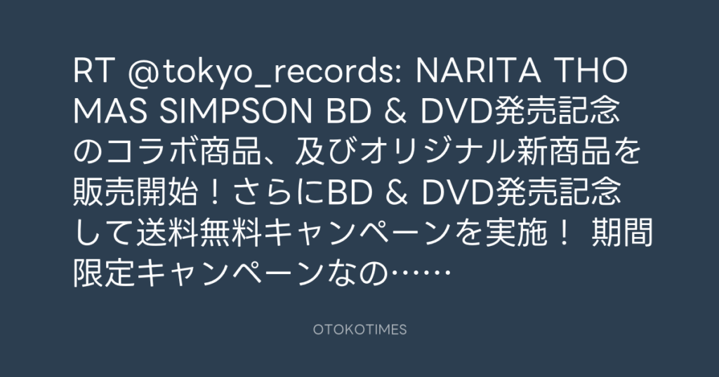 RT @tokyo_records: NARITA THOMAS SIMPSON BD & DVD発売記念のコラボ商品、及... -