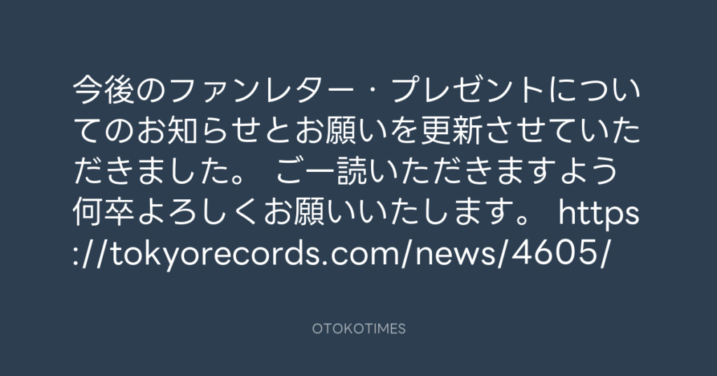 今後のファンレター・プレゼントについてのお知らせとお願いを更新させていただき... -