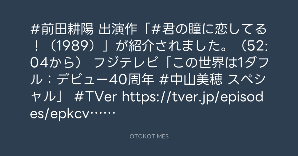 #前田耕陽 出演作「#君の瞳に恋してる!(1989)」が紹介されました。(52:04から... -