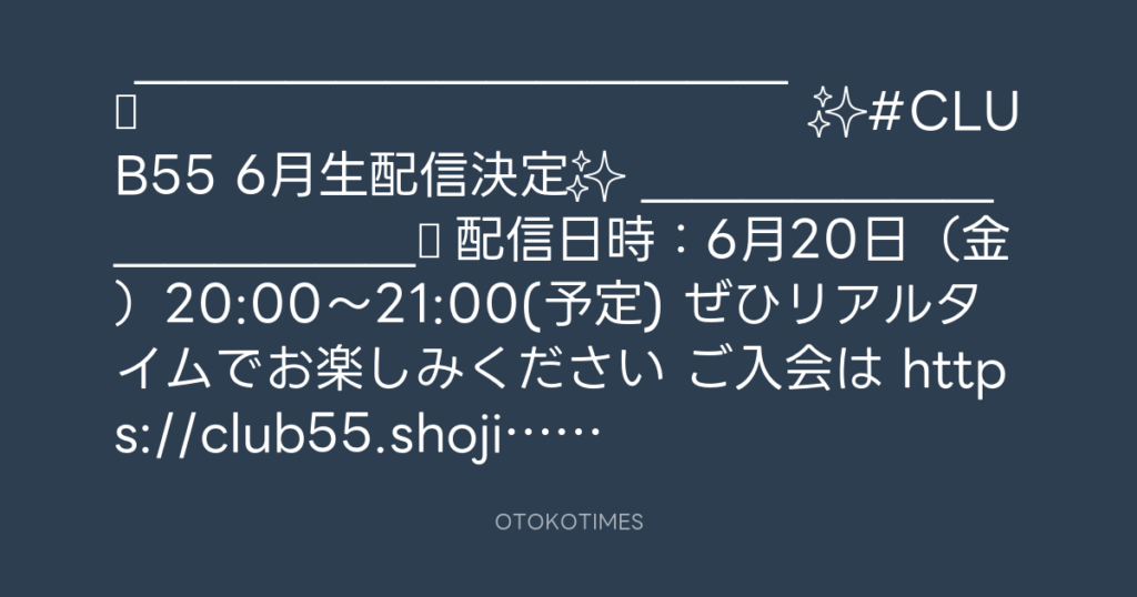 ◤ ̄ ̄ ̄ ̄ ̄ ̄ ̄ ̄ ̄ ̄ ̄ ̄ ̄ ✨#CLUB55 6月生配信決定✨ ___________... -