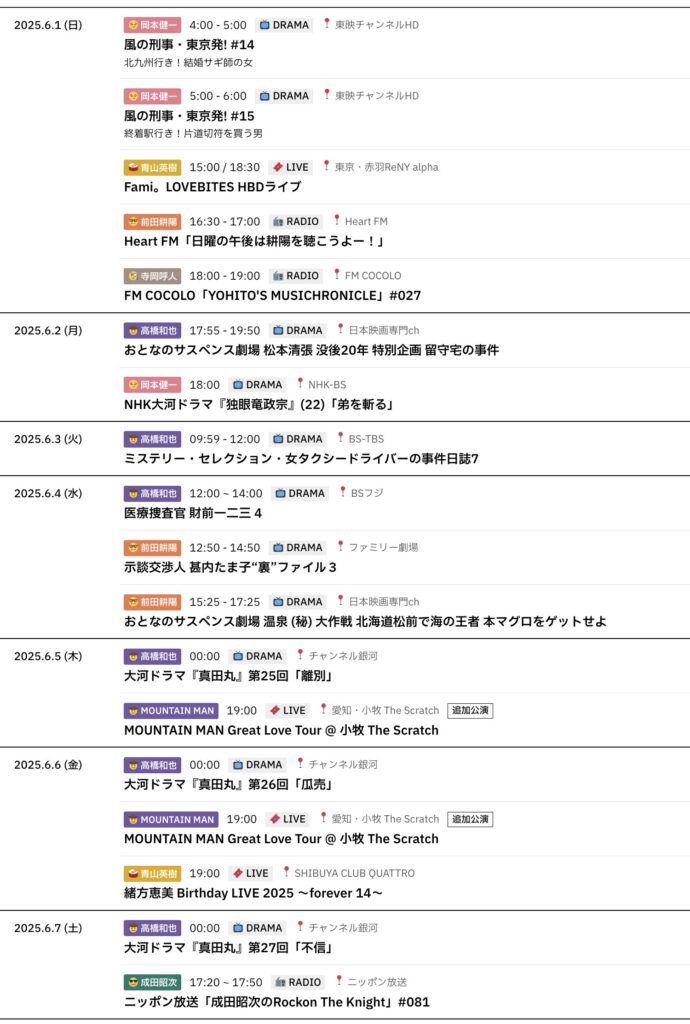 6/1~6/7までのスケジュールをお届けします。 ※現時点で確認可能な範囲のみ。 (202... -