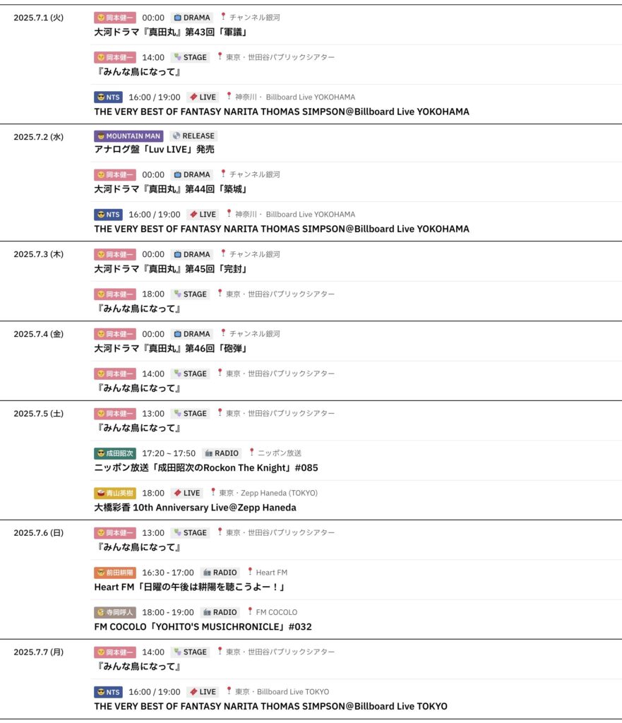 7/1~7/7までのスケジュールをお届けします。 ※現時点で確認可能な範囲のみ。 (202... -