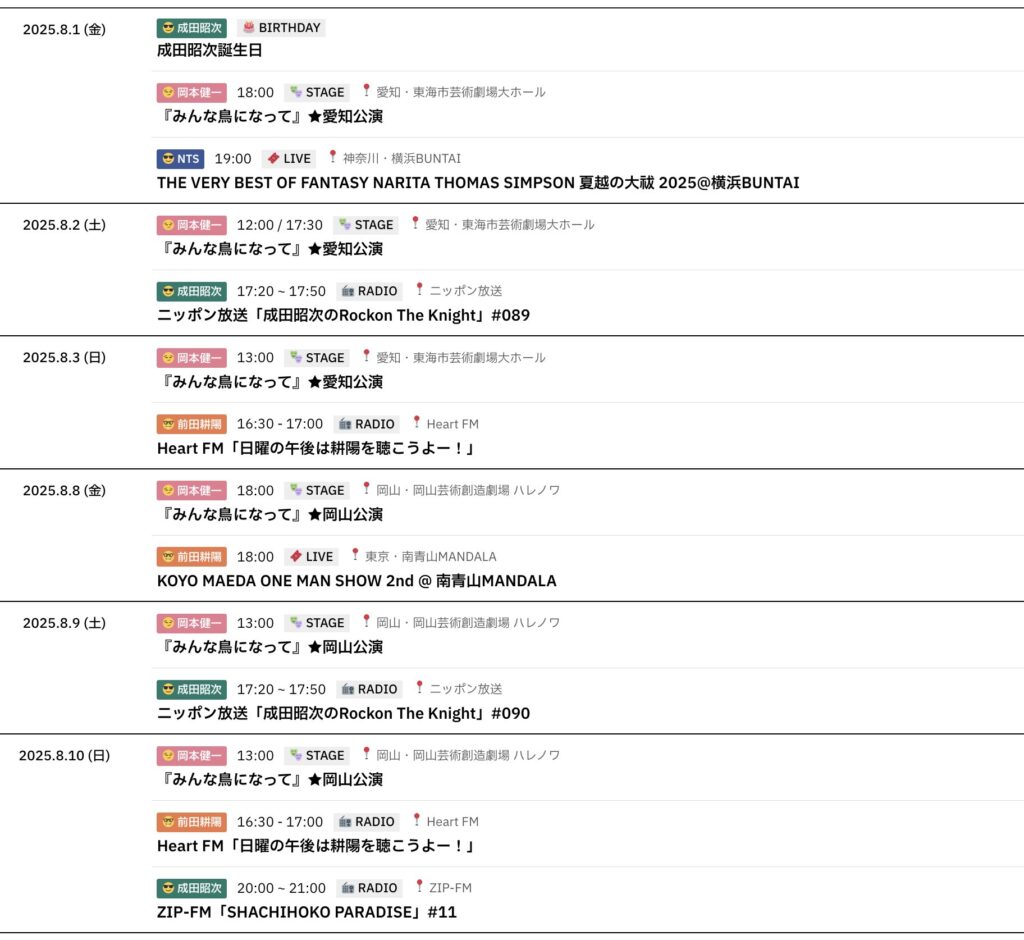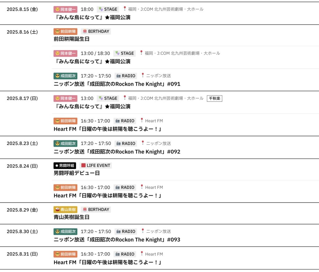 8/15~8/31までのスケジュールをお届けします。 ※現時点で確認可能な範囲のみ。 (2... -