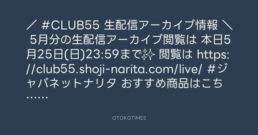 / #CLUB55 生配信アーカイブ情報📺 \ 5月分の生配信アーカイブ閲覧は 本日5月25... -
