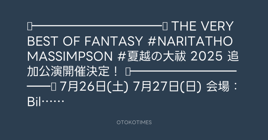 【新規公演決定】 〈追加公演〉NARITA THOMAS SIMPSONKURE Presents THE VERY BEST... -