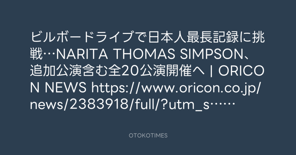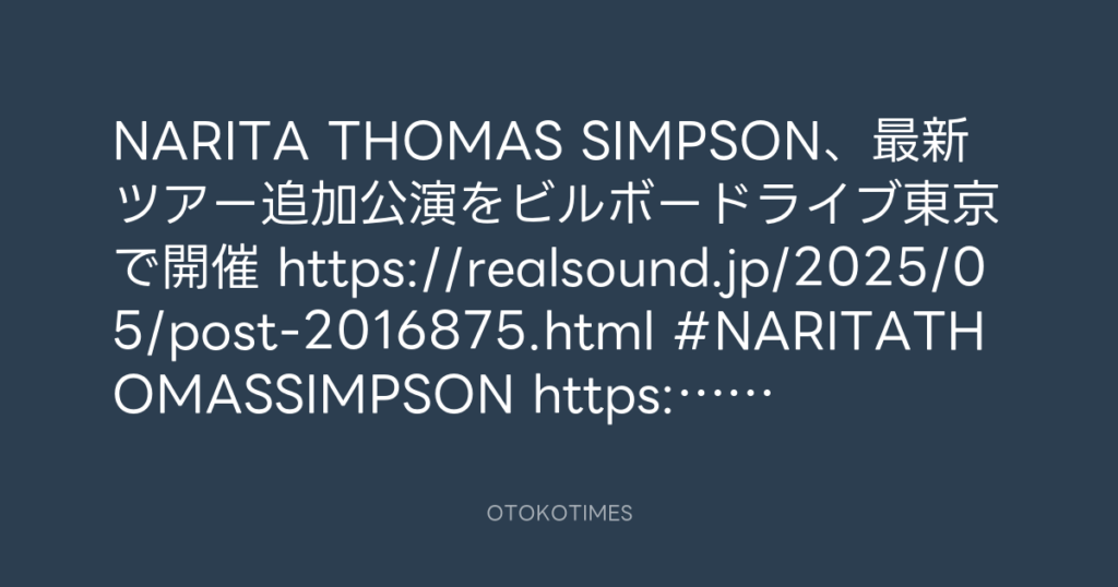 NARITA THOMAS SIMPSON、最新ツアー追加公演をビルボードライブ東京で開催 https:/... -