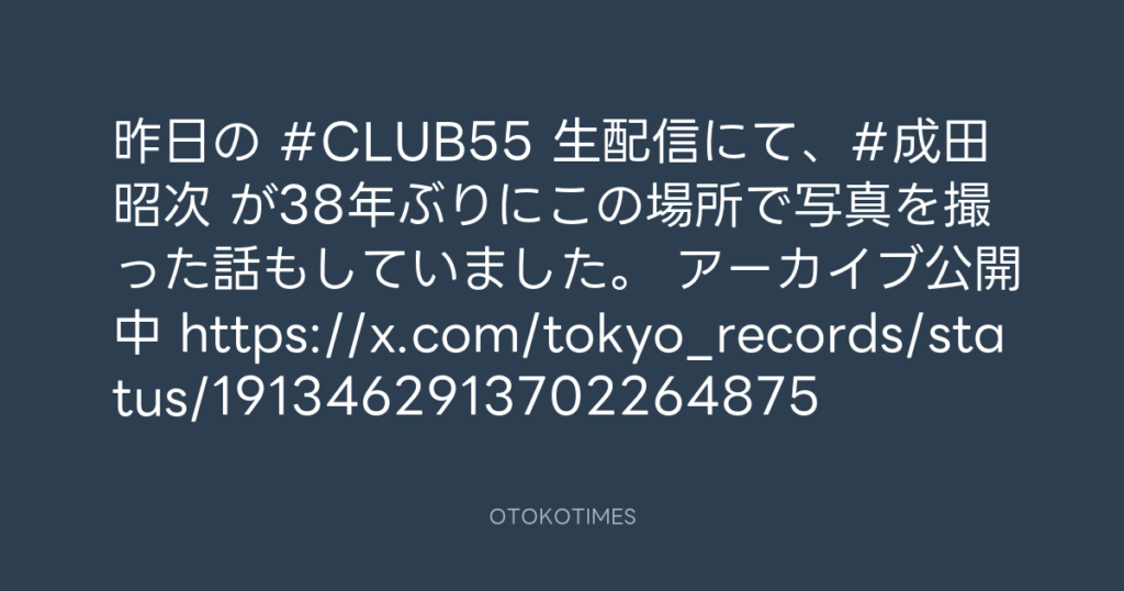 昨日の #CLUB55 生配信にて、#成田昭次 が38年ぶりにこの場所で写真を撮った話もし... -