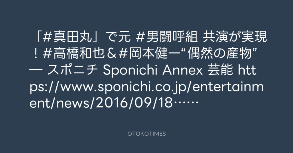 「#真田丸」で元 #男闘呼組 共演が実現!#高橋和也&#岡本健一“偶然の産物”― スポ... -