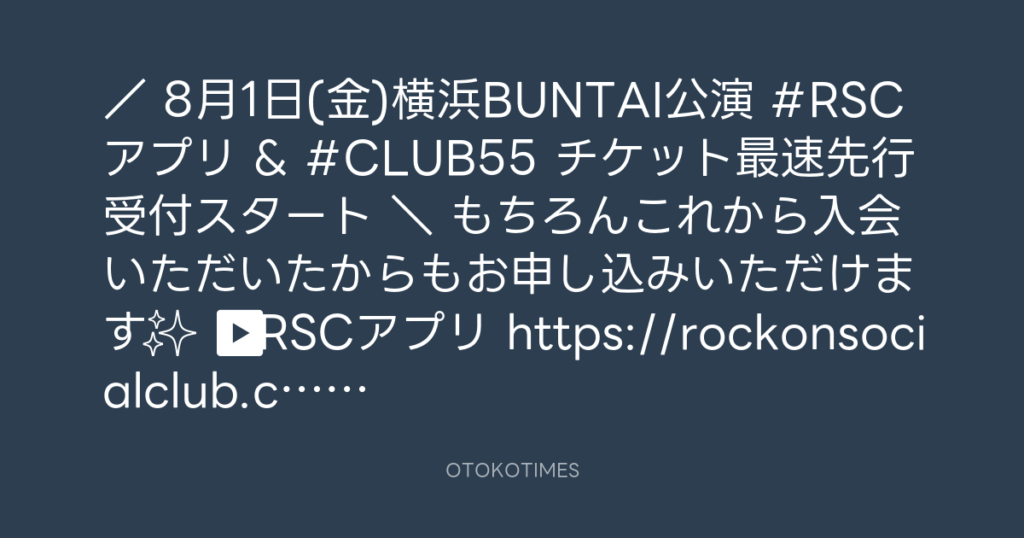 / 8月1日(金)横浜BUNTAI公演 #RSCアプリ & #CLUB55 チケット最速先行受付スタ... -