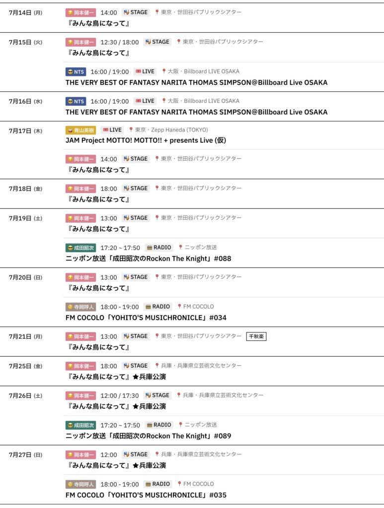 📅 7/14-7/27までのスケジュールをお届けします。 ※現時点で確認可能な範囲のみ。 ... -