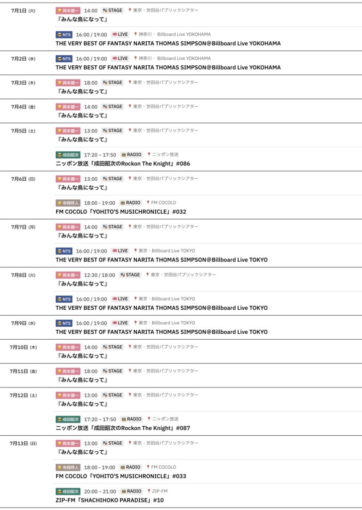 📅 7/1-7/13までのスケジュールをお届けします。 ※現時点で確認可能な範囲のみ。 ... -