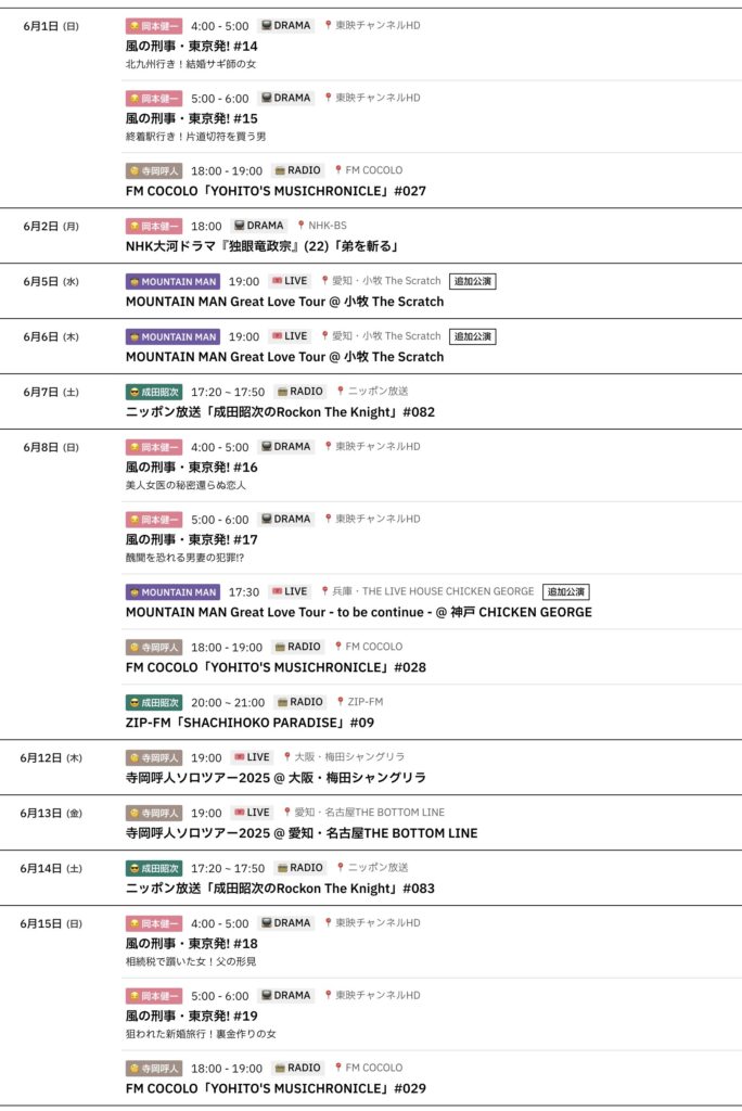 📅 6/1-6/15までのスケジュールをお届けします。 ※現時点で確認可能な範囲のみ。 ... -
