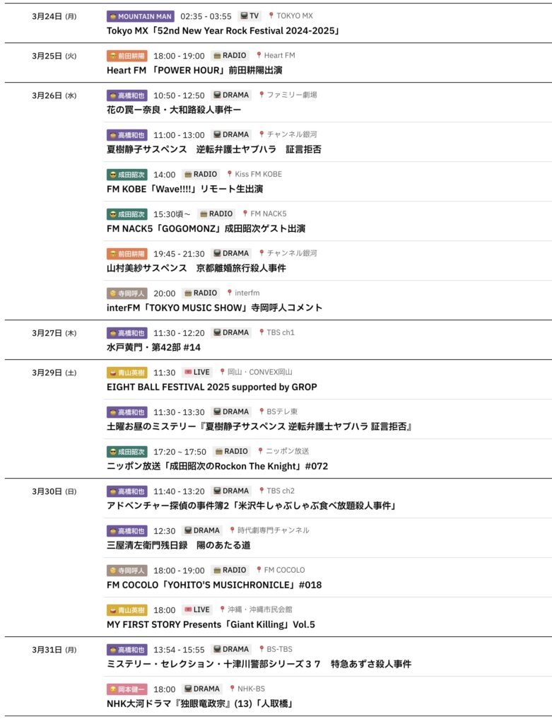 📅 〜3/31までのスケジュールをお届けします。 ※現時点で確認可能な範囲のみ。 (2... -