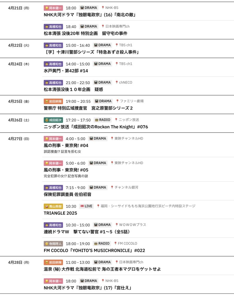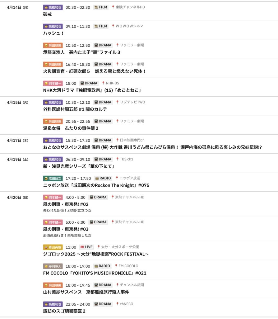 📅 4/14-4/20までのスケジュールをお届けします。 ※現時点で確認可能な範囲のみ。 ... -