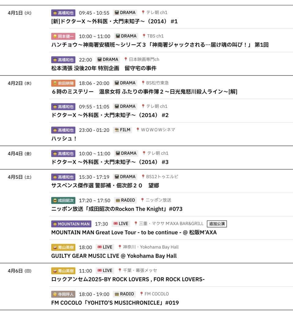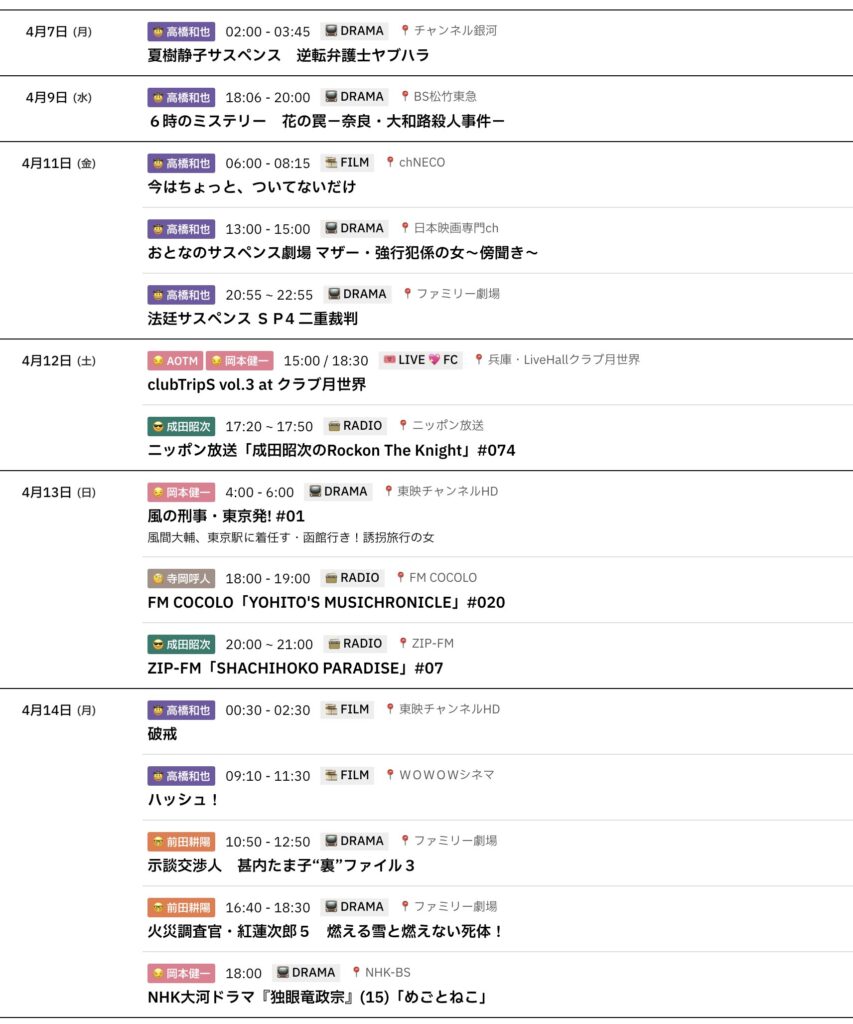 📅 4/7-4/14までのスケジュールをお届けします。 ※現時点で確認可能な範囲のみ。 ... -