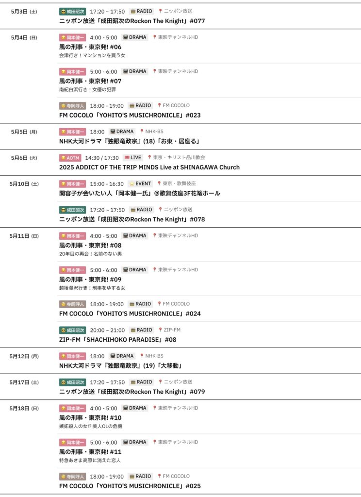 📅 5/3-5/18までのスケジュールをお届けします。 ※現時点で確認可能な範囲のみ。 ... -