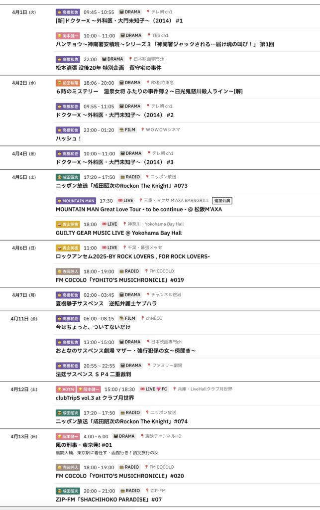 📅 4/1〜4/13までのスケジュールをお届けします。 ※現時点で確認可能な範囲のみ。 ...
