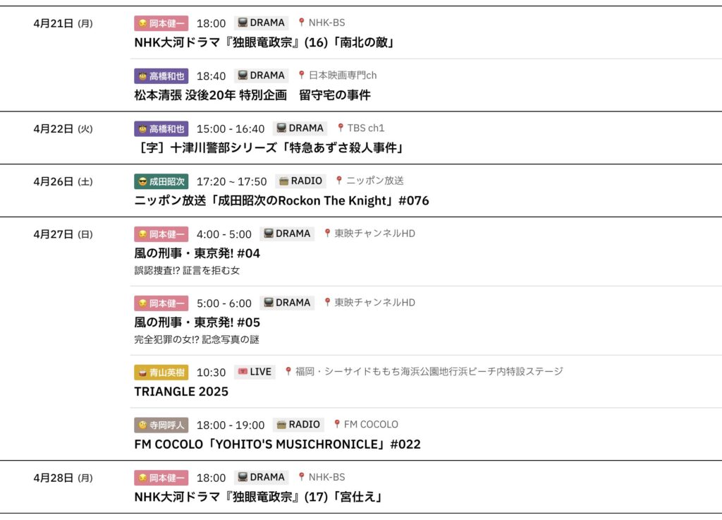 📅 4/14〜4/20までのスケジュールをお届けします。 ※現時点で確認可能な範囲のみ。... -