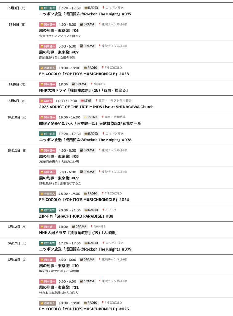 📅 5/3〜5/18までのスケジュールをお届けします。 ※現時点で確認可能な範囲のみ。 ... -