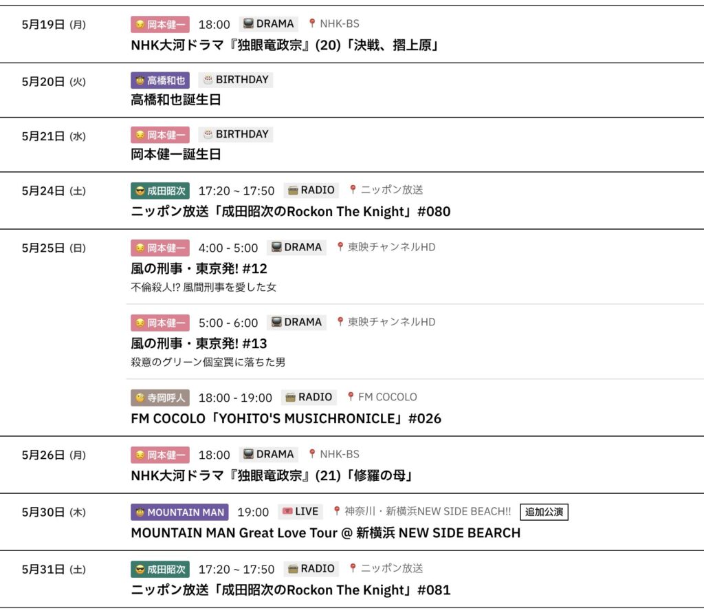 📅 5/19〜5/31までのスケジュールをお届けします。 ※現時点で確認可能な範囲のみ。... -