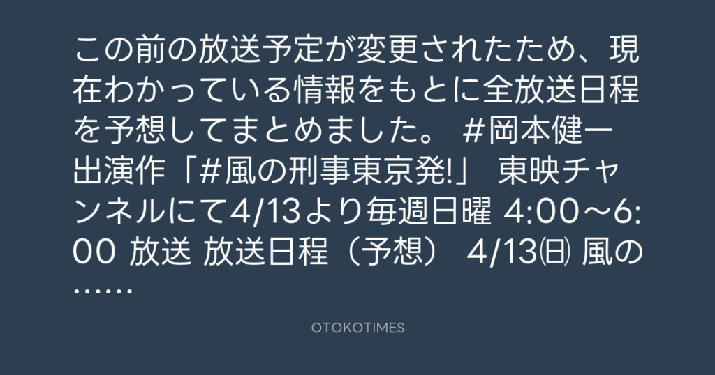 スケジュールまとめはハイライトで確認できます。 #岡本健一 出演作「#風の刑事東... -